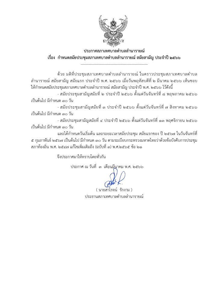กำหนดสมัยประชุมสภาเทศบาลตำบลลำนารายณ์ สมัยสามัญ ประจำปี 2566 ประกาศกำหนดสมัยประชุม 3 มีนาคม 25668 มกราคม 2024 lamnaraicity@2021 FacebookFacebookXTwitterLINELine