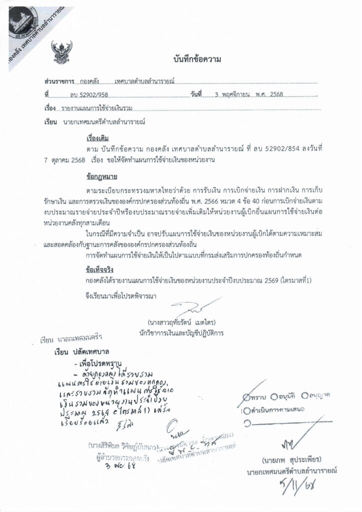 • รายงานผลการใช้จ่ายงบประมาณประจำเดือน