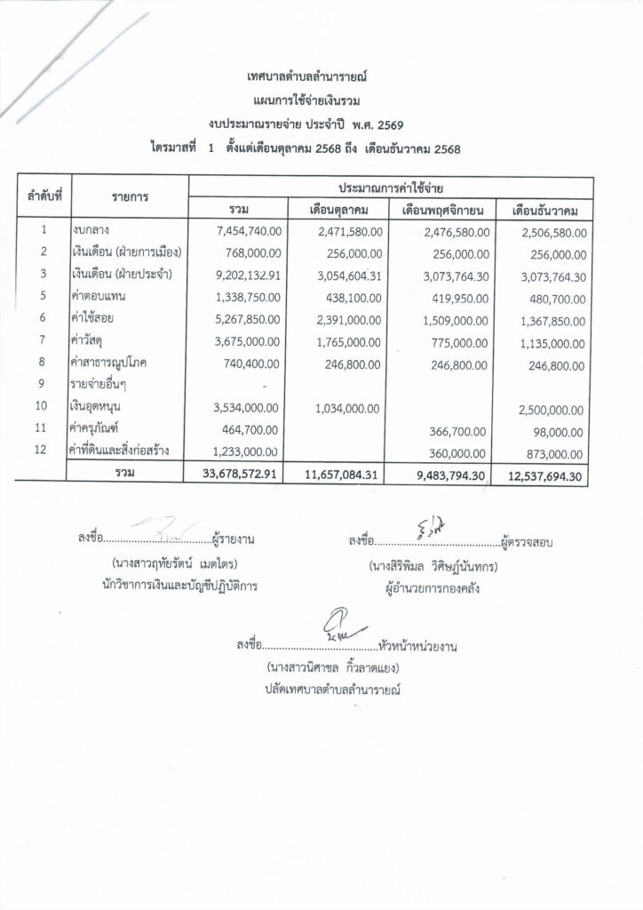 รายงานแสดงผลการดำเนินงาน ประจำปี 2569 ไตรมาสที่ 1 ตั้งแต่เดือนตุลาคม 2568 ถึง เดือนธันวาคม 2568