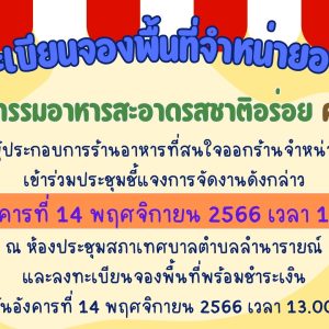 ประชาสัมพันธ์ เปิดลงทะเบียนจองพื้นที่จำหน่ายอาหาร เทศบาลตำบลลำนารายณ์ ได้จัดทำโครงการมหกรรมอาหารสะอาดรสชาติอร่อย ครั้งที่ 15 ระหว่างวอ่านต่อ…