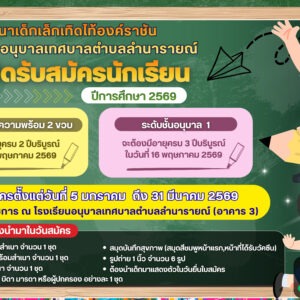 ประกาศรับสมัครนักเรียนปีการศึกษา 2569 ศูนย์พัฒนาเด็กเล็กเทิดไท้องค์ราชัน และโรงเรียนอนุบาลเทศบาลตำบลลำนารายณ์ รับสมัครนักเรียน ระดับเตอ่านต่อ…