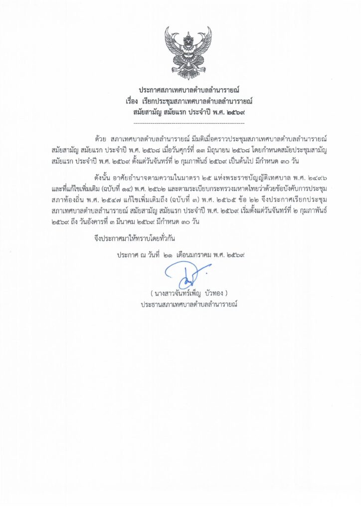 เรียกประชุมสภาเทศบาลตำบลลำนารายณ์ สมัยสามัญ สมัยแรก ประจำปี พ.ศ. 2569 เรียกประชุมสภาเทศบาล 21 มกราคม 256920 กุมภาพันธ์ 2026 lamnaraicity@2021 FacebookFacebookXTwitterLINELine
