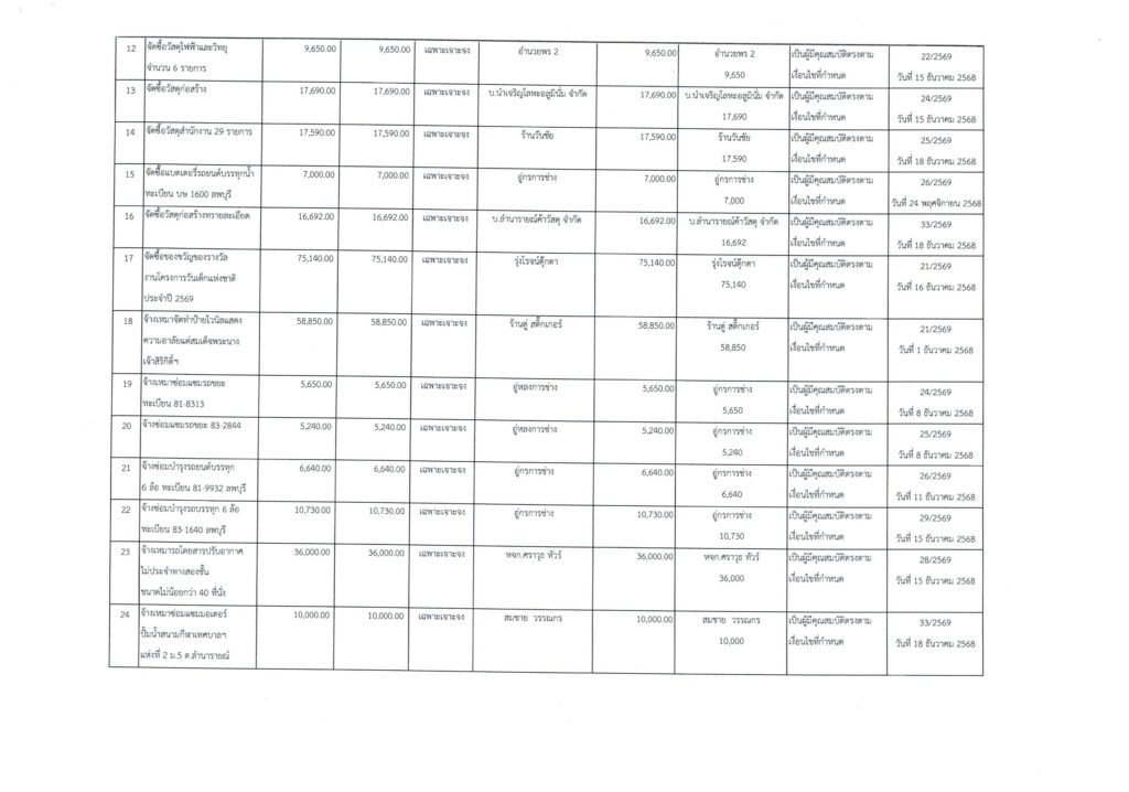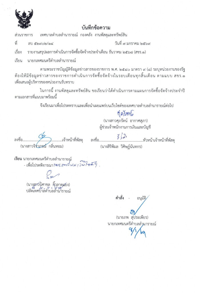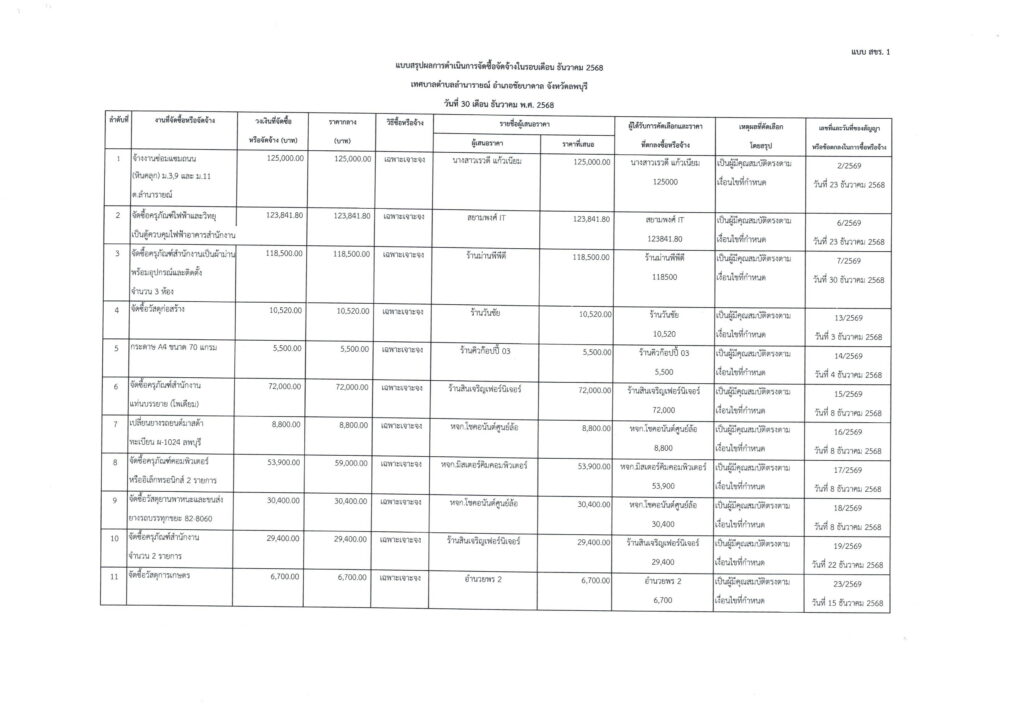 • รายงานสรุปผลการดำเนินการจัดซื้อจัดจ้างประจำเดือน ธันวาคม 2568 (สขร.1)