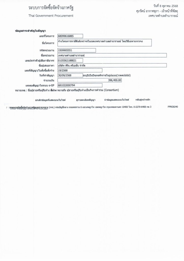 ข้อมูลสาระสำคัญของสัญญาจ้าง ข้อมูลสาระสำคัญในสัญญา 30 กันยายน 25688 ตุลาคม 2025 lamnaraicity@2021 ข้อมูลสาระสำคัญของสัญญาจ้าง เลขที่สัญญา 19/2568 ลงวันที่ 30 กันยายน 2568 โครงการจ้างโครงการทาสีตีเส้นจราจรในเขตเทศบาลตำบลลำนารายณ์ โดยวิธีเฉพาะเจาะจง FacebookFacebookXTwitterLINELine