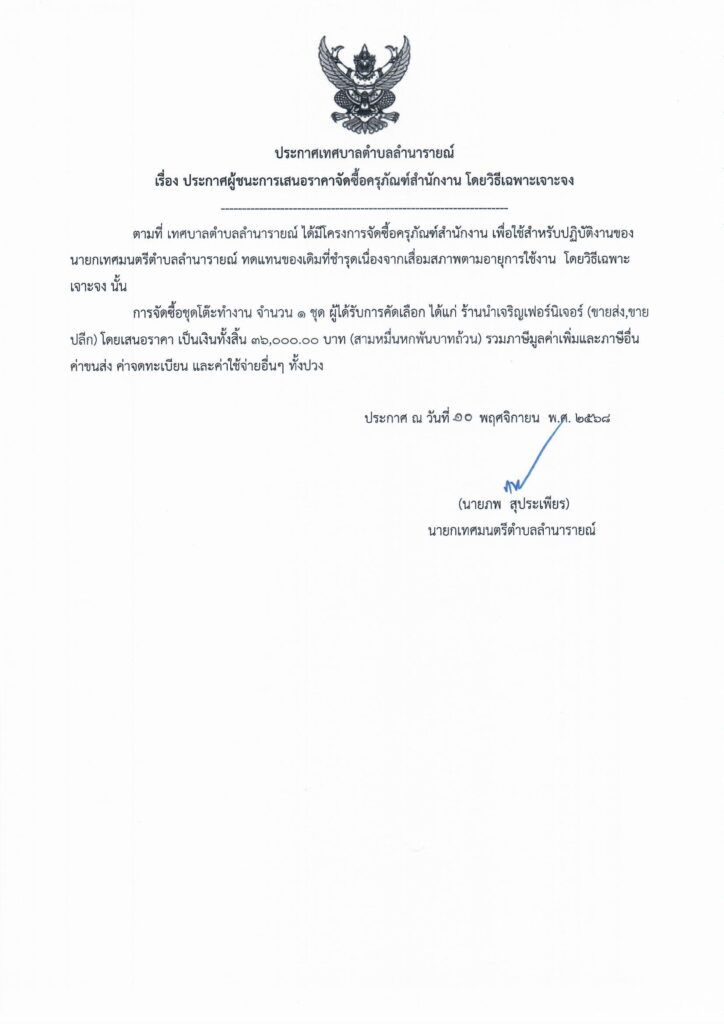 ประกาศผู้ชนะการเสนอราคาจัดซื้อครุภัณฑ์สำนักงาน โดยวิธีเฉพาะเจาะจง ประกาศผู้ชนะการเสนอราคา 10 พฤศจิกายน 256810 พฤศจิกายน 2025 lamnaraicity@2021 FacebookFacebookXTwitterLINELine