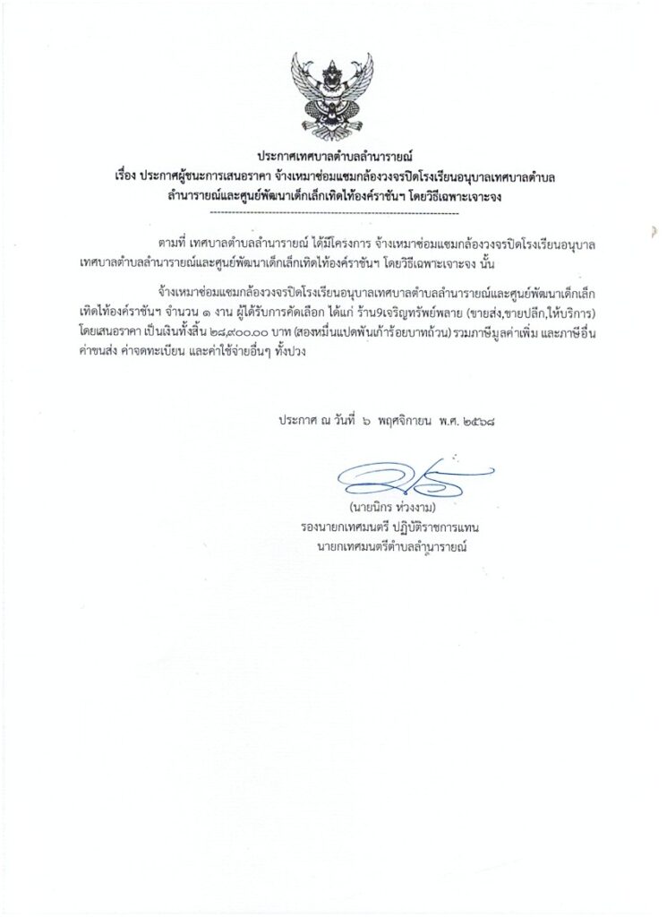 ประกาศผู้ชนะการเสนอราคา จ้างเหมาซ่อมแซมกล้องวงจรปิด โรงเรียนอนุบาลเทศบาลตำบลลำนารายณ์และศูนย์พัฒนาเด็กเล็กเทิดไท้องค์ราชันฯ โดยวิธีเฉพาะเจาะจง ประกาศผู้ชนะการเสนอราคา 6 พฤศจิกายน 256811 พฤศจิกายน 2025 lamnaraicity@2021 FacebookFacebookXTwitterLINELine