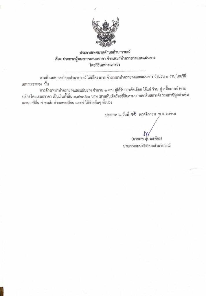 • ประกาศผู้ชนะการเสนอราคา จ้างเหมาทำตรายางและแผ่นยาง โดยวิธีเฉพาะเจาะจง