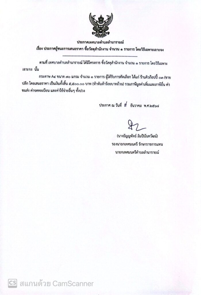 • ประกาศผู้ชนะการเสนอราคา ซื้อวัสดุสำนักงาน จำนวน 1 รายการ โดยวิธีเฉพาะเจาะจง
