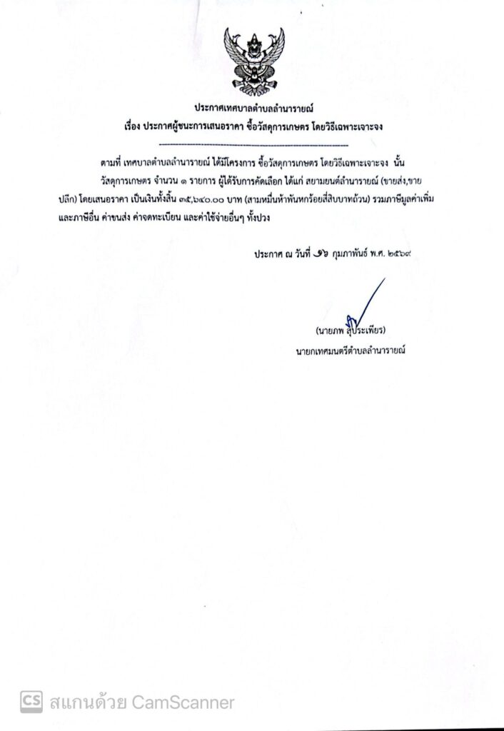 ประกาศผู้ชนะการเสนอราคา ซื้อวัสดุการเกษตร โดยวิธีเฉพาะเจาะจง ประกาศผู้ชนะการเสนอราคา 16 กุมภาพันธ์ 256916 กุมภาพันธ์ 2026 lamnaraicity@2021 FacebookFacebookXTwitterLINELine