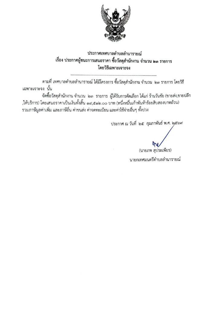 ประกาศผู้ชนะการเสนอราคา ซื้อวัสดุสำนักงาน จำนวน 23 รายการ โดยวิธีเฉพาะเจาะจง ประกาศผู้ชนะการเสนอราคา 25 กุมภาพันธ์ 256925 กุมภาพันธ์ 2026 lamnaraicity@2021 FacebookFacebookXTwitterLINELine