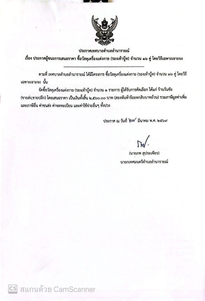 ประกาศผู้ชนะการเสนอราคา ซื้อวัสดุเครื่องแต่งกาย (รองเท้าบู๊ท) จำนวน 16 คู่ โดยวิธีเฉพาะเจาะจง ประกาศผู้ชนะการเสนอราคา 27 มีนาคม 256930 มีนาคม 2026 lamnaraicity@2021 FacebookFacebookXTwitterLINELine
