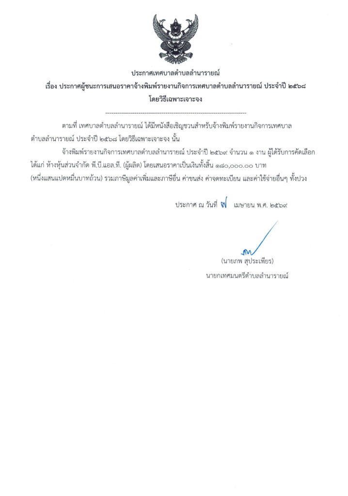 ประกาศผู้ชนะการเสนอราคาจ้างพิมพ์รายงานกิจการเทศบาลตำบลลำนารายณ์ ประจำปี 2568 โดยวิธีเฉพาะเจาะจง ประกาศผู้ชนะการเสนอราคา 7 เมษายน 25697 เมษายน 2026 lamnaraicity@2021 FacebookFacebookXTwitterLINELine