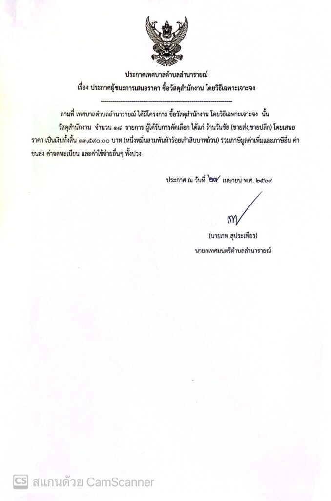 ประกาศผู้ชนะการเสนอราคา ซื้อวัสดุสำนักงาน โดยวิธีเฉพาะเจาะจง ประกาศผู้ชนะการเสนอราคา 27 เมษายน 256927 เมษายน 2026 lamnaraicity@2021 FacebookFacebookXTwitterLINELine