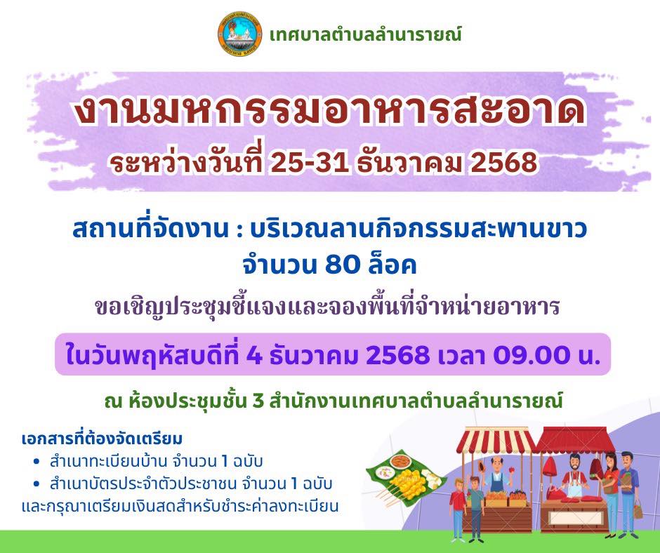 *** หากมีผู้ประกอบการสนใจจองพื้นที่เกิน 80 ร้าน เทศบาลตำบลลำนารายณ์จะใช้วิธีจับสลาก ***
