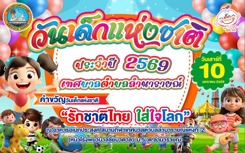 เทศบาลตำบลลำนารายณ์ ขอเชิญน้อง ๆ หนู ๆ มาสนุกกับงาน “วันเด็กแห่งชาติ ประจำปี 2569”